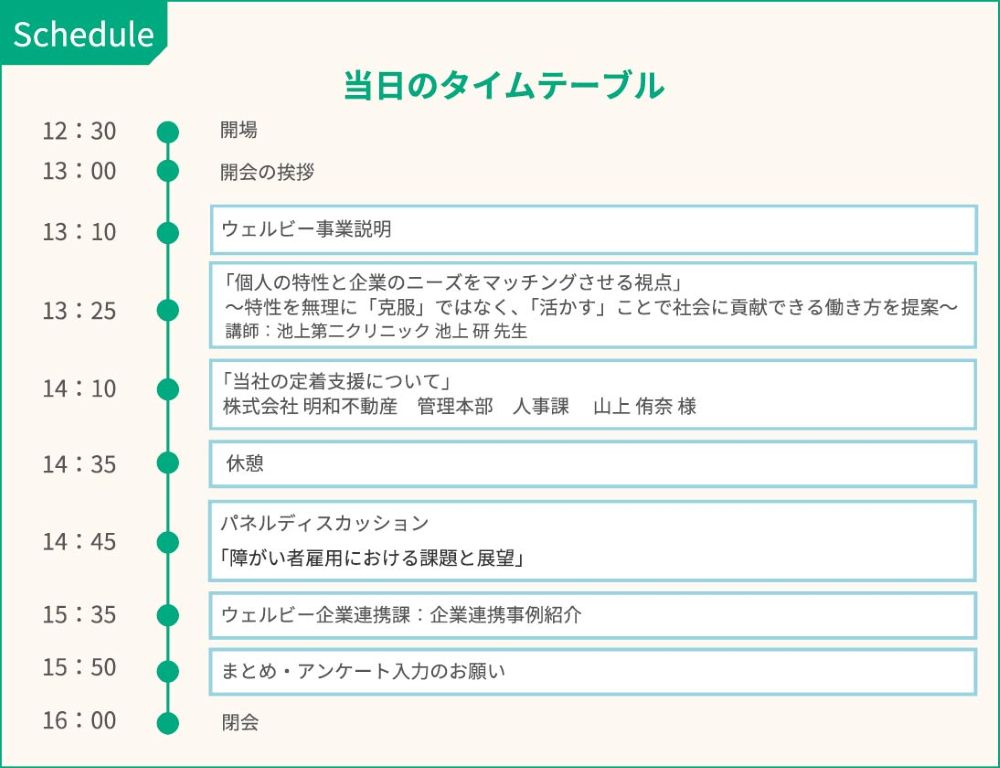 また、今後の障害者雇用について意見交換の時間も設けておりますので、皆さまのご参加を心よりお待ちしております。